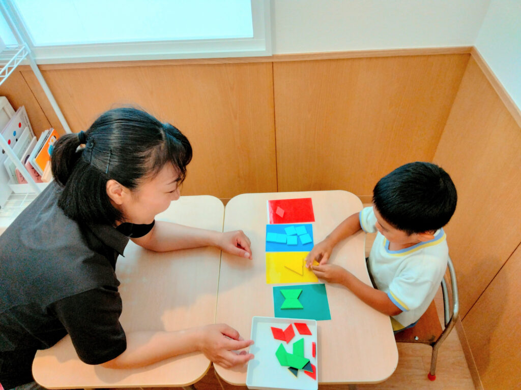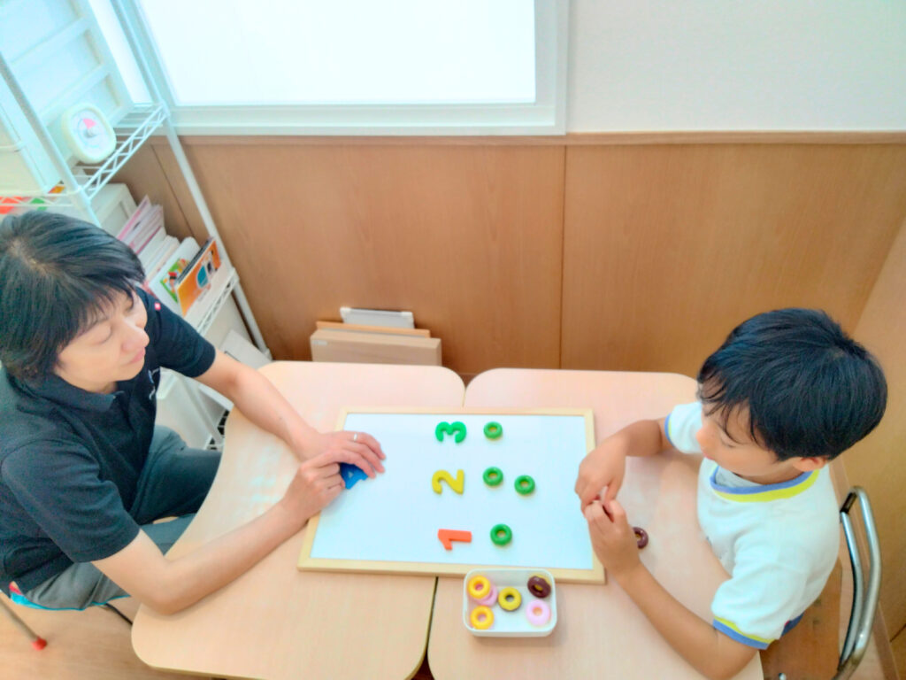 お子さん一人一人の特性や課題に合わせたプログラムをスタッフとお子さん一対一にて個別に行います。