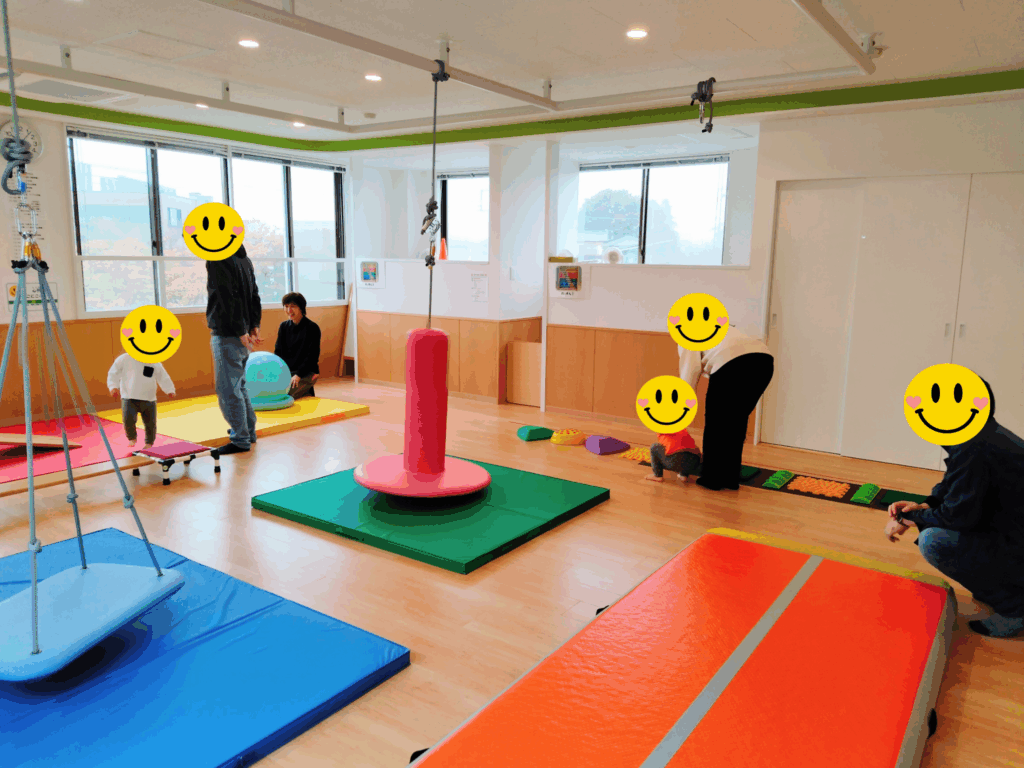 感覚統合療育に良いと言われている吊り具やエアマット等を親子で体験し、楽しみました。